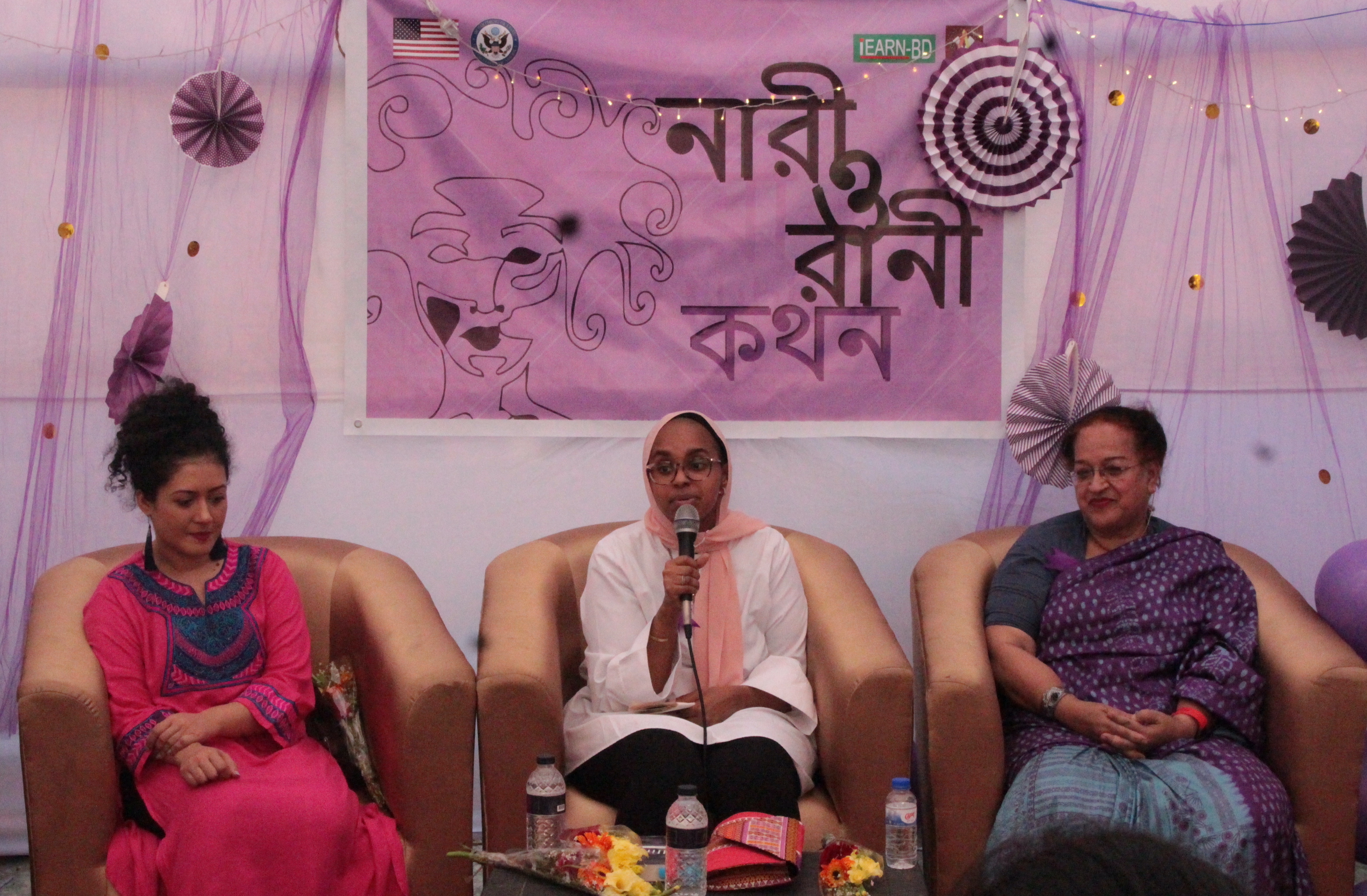 At the end of the day, we had a story telling session moderated by Khadija H. Mohamud, the Assistant for Cultural Affairs at the U.S. Embassy in Dhaka. There were seven guests in the panel who were all women from different backgrounds and professions. We had an activist, a businesswoman, a journalist, a professor, a diplomat, a development professional, and a teacher. They all shared their thoughtful and intimate journeys as women. The audience was moved by their stories and reflected on their thoughts and opinions. The session also raised awareness about the hardship women have to face in society and how they fight to overcome it.